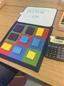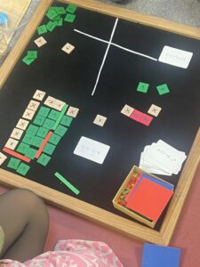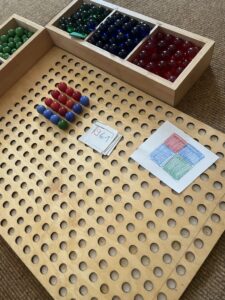 In meinem Alltag an einer jahrgangsübergreifend arbeitenden Grundschule sind die Rechenstäbe, das Markenspiel und das Murmelbrett nicht aus dem Alltag wegzudenken. Das durchdachte System der Montessorimathematik geht schrittweise vom Konkreten hin zur Abstraktion – die Verschriftlichung ist dabei immer der letzte Schritt. Vorher kommt das Verständnis und die häufige Wiederholung der Handlung, die dem Gehirn die Möglichkeit bietet, Zusammenhänge zu erkennen und nachhaltig abzuspeichern.