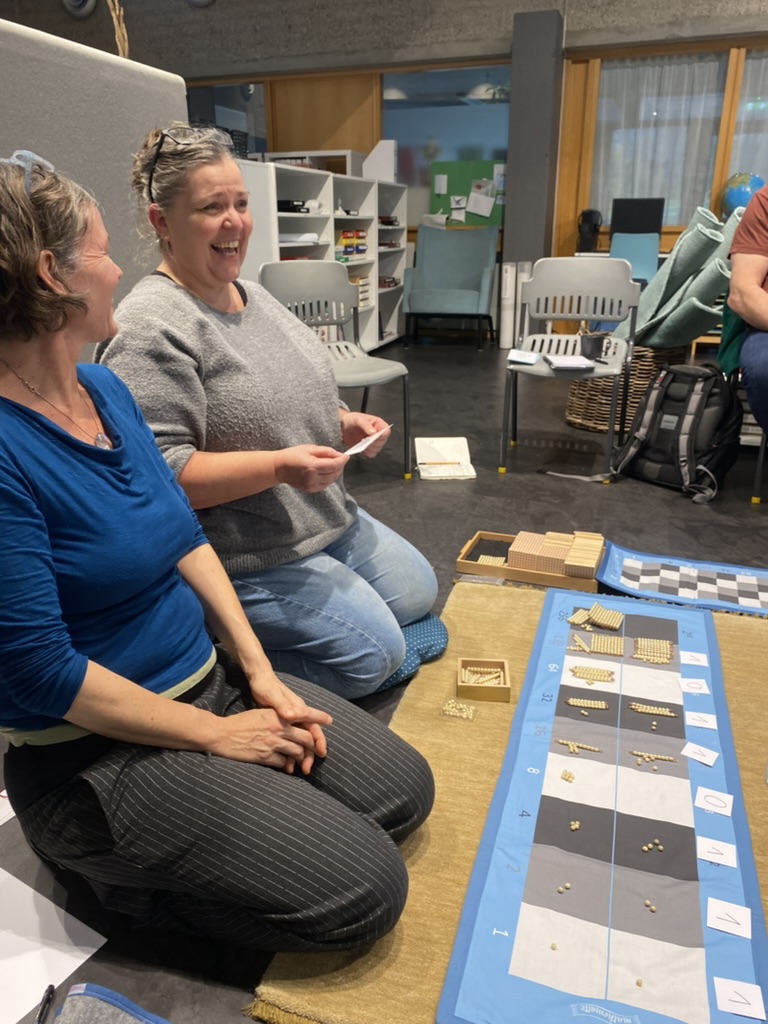 Montessori Mathematik macht vor allem eins: Freude! Es fühlt sich für mich immer an, als ob ich in einem Spielzeugladen sitze, wenn ich Montessori Mathematik präsentieren darf. Oder besser gesagt: mit dem Material zusammen mit anderen Menschen spielen kann. Denn eigentlich sind die ästhetisch ansprechenden Materialien vor allem eins: Regelspiele, die die Regeln der Mathematik Stück für Stück in „begreifbare“ Handlungen überstzen. Viele Menschen stellen in den Montessorikursen dann fest: „Hätte ich damals so Mathematik kennengelernt, wäre es für mich richtig schön gewesen!“ Auch auf meinem Instagramkanal, wo einige Videos viral gegangen sind, schreiben Menschen oft: „Ich habe das erste Mal seit 30 Jahren verstanden, wie das geht! Hätte mir doch jemand in meiner Schulzeit das so erklärt!“ Und auch für mich erschlossen sich am Anfang meiner Montessori Reise noch einmal ganz neue Welten, obwohl mir Mathematik schon als Kind sehr leicht fiel und ich auch ohne das schöne Montessorimaterial gut zurecht kam. Durch das Material sind Zusammenhänge einfach oft viel visueller sichtbar!