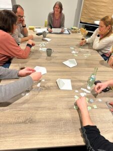 So bin ich einen großen Teil meiner Zeit entweder unter meinem eigenen Namen in Schulen oder für die Akademie Biberkor unterwegs, um Wissen über Montessori Mathematik und handlungsorientierten Unterricht (neben dem Nervensystem- und Traumathema) auch in den Regelschulen weiterzugeben. Mein Schwerpunkt liegt dabei auf Ansätzen für die Sek I, wo es oft wenig gibt, was ansprechend ist, weder an den Montessorischulen noch an den Regelschulen. Dabei kann man eigentlich alle Themen der Mittelstufe sehr anschaulich einführen. Drumherum biete ich auch noch viele andere Themen an: ich beschäftige mich gerne mit verschiedenen Zahlensystemen, der Verbindung aus Geometrie & Kunst und allem, was mit Variablen und Termen zu tun hat. Schritt für Schritt versuche ich Ansätze aus der Montessori Mathematik tauglich für den klasschischen Fachunterricht zu machen, um die tollen Materialien für alle verfügbar zu machen.